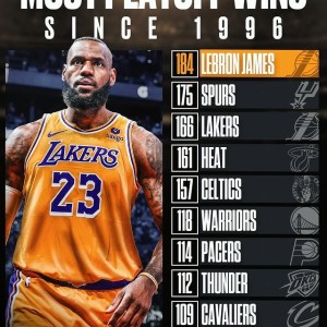 14 07月 2025 123 让10年😲詹姆斯季后赛胜场数超96年来所有队 他06年才打季后赛 美媒BF晒图,詹姆斯季后赛胜场数184场,超越1996年以来所有的球队,球队里排名前五的是:马刺175场、湖人166场、... 英超