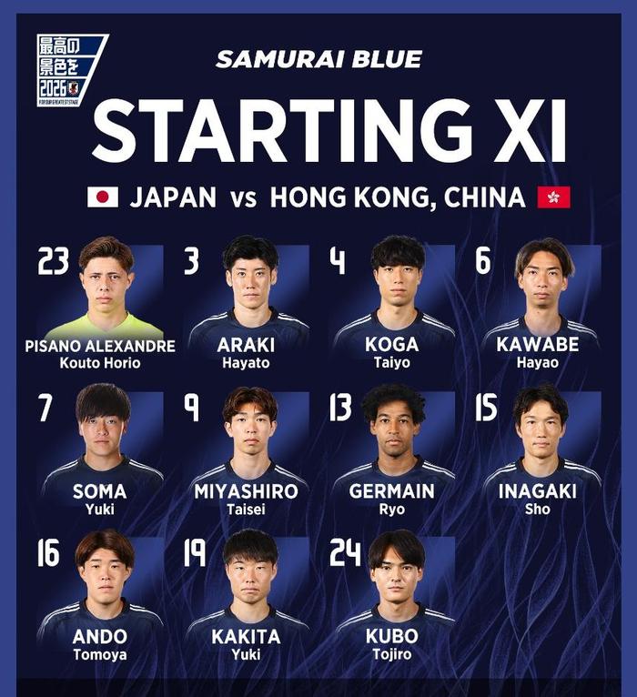 日本首发:23-幸冬堀尾、3-荒木隼人、4-古贺太阳、16-安藤智哉、7-相马勇纪、6-川边骏、15-稻垣祥、24-久保藤次郎、9-宫代大圣、13-热尔曼-良、19-垣田裕晖