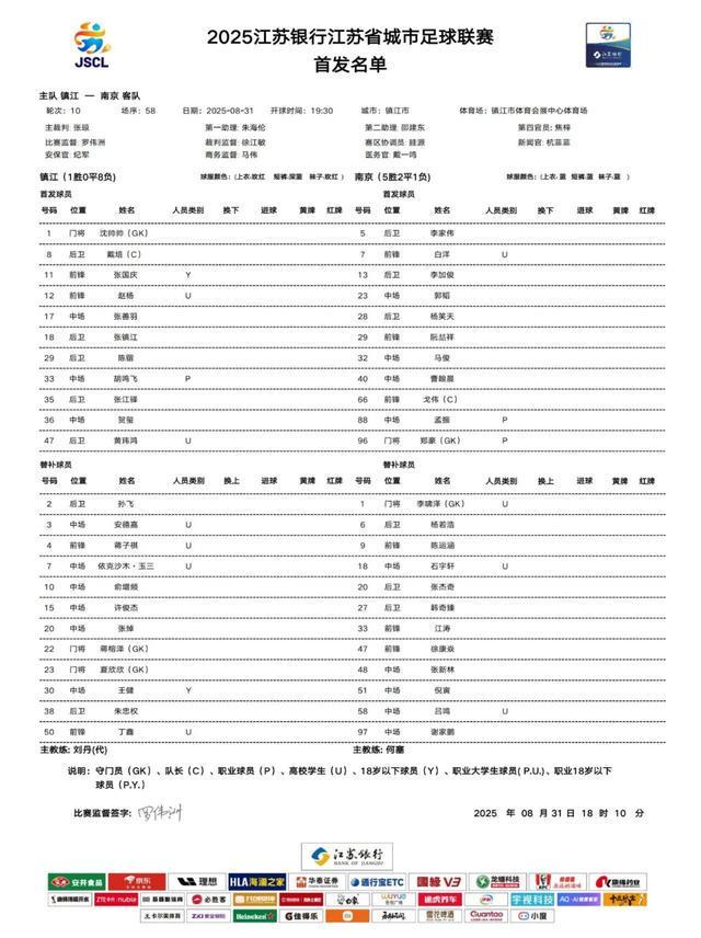 8月31日晚,“苏超”第10轮继续开赛,其中镇江队坐镇主场迎战南京队。在上一轮输给常州队之后,镇江队以1胜0平8负积3分暂居排行榜第13位。昨天,常州队1:1战平泰州队,目前积5分排名12位。因此本场,镇江队能否翻身摆脱“十三妹”之名,成为最大悬念。