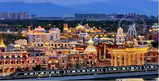 丝路欢乐世界作为中国首座丝路主题微度假旅游目的地,围绕“丝路、欢乐、科技”三大核心价值,通过以“文化+科技”“旅游+音乐剧”“IP+沉浸式游园”等融合创新的模式,对“一带一路”倡议下的“新丝路精神”进行了创新诠释,将丝路沿线国家和地区的人文风情等以多元化的建筑景观、百场特色演艺和沉浸式互动体验联袂呈现。
