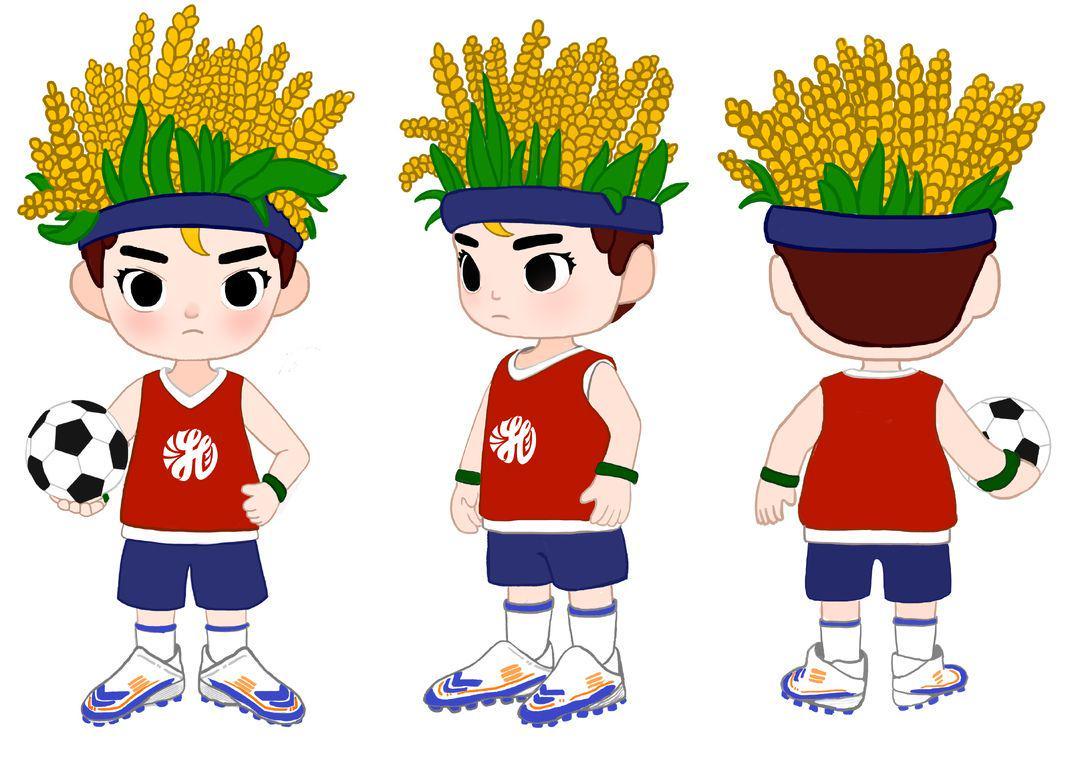 “湘超联赛”展现湖南草根足球运动员风采,着力培养本土青少年足球人才。“超级稻”与“超级联赛”相匹配将湘超足球联赛吉祥物的IP形象,用超级杂交水稻作为主要设计元素设计一个留着冲天稻穗头的阳光少年足球小将,呼应湖南稻作文化根基,传达出湖湘文化的独特魅力,传递湖湘足球与地域文化融合的活力。